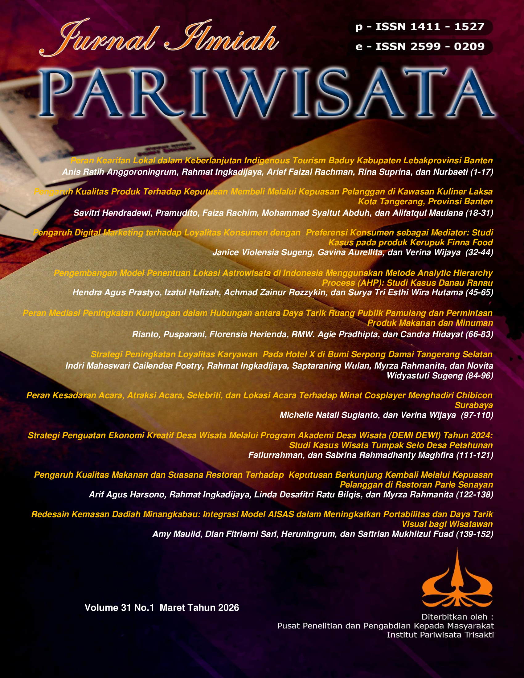 Vol 31 No 1 (2026): Jurnal Ilmiah Pariwisata
